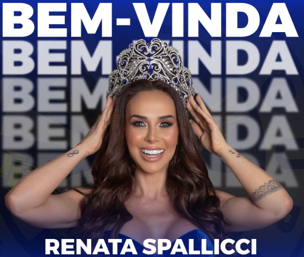 “Temos a honra de anunciar a nossa nova Rainha de Bateria da Águia de Ouro: a empresária Renata Spallicci!