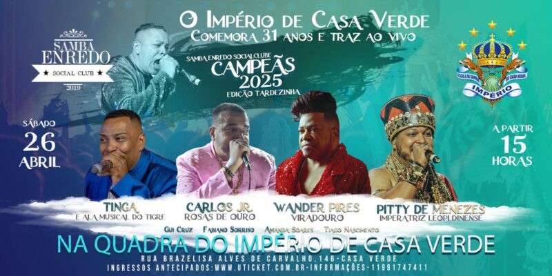 Samba-Enredo Social Club “Edição das Campeãs 2025” é atração do aniversário da agremiação Império de Casa Verde