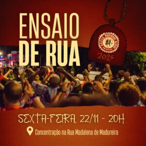 A Mocidade Alegre, atual Bicampeã do Carnaval Paulistano, realizará seu primeiro ensaio de rua rumo ao Carnaval 2025, nesta sexta (22). A concentração será na Rua Madalena de Madureira, Zona Norte, a partir das 20h.