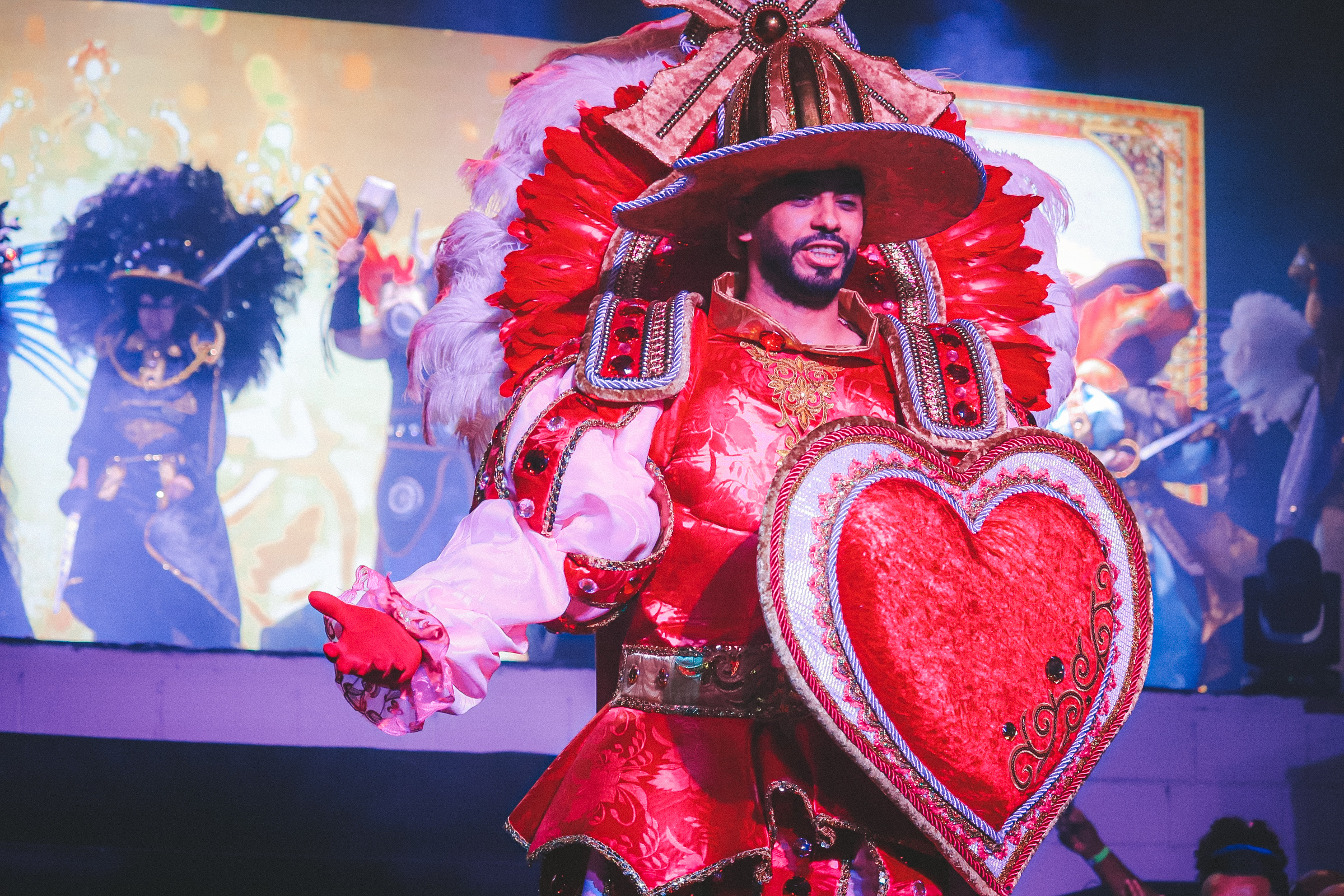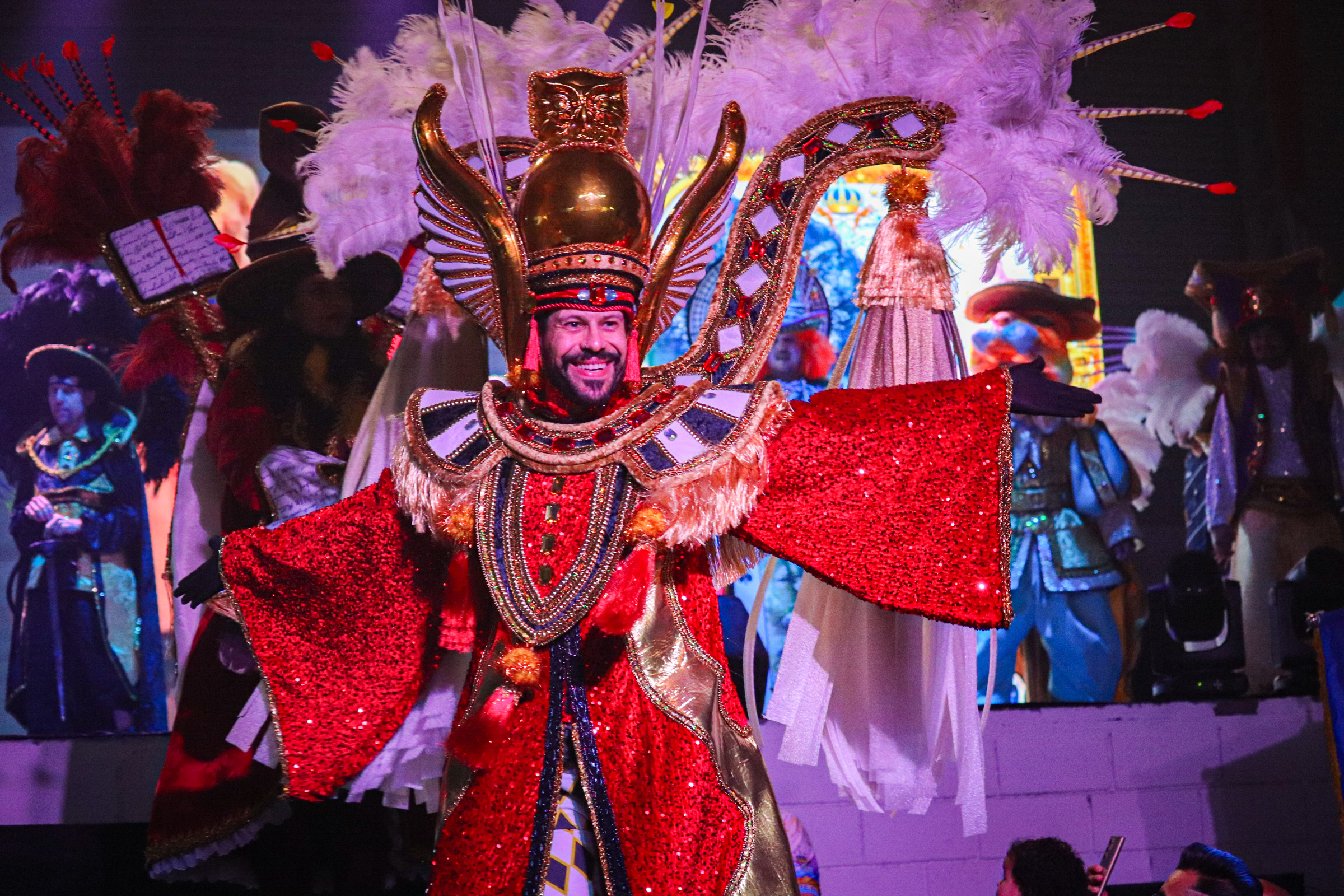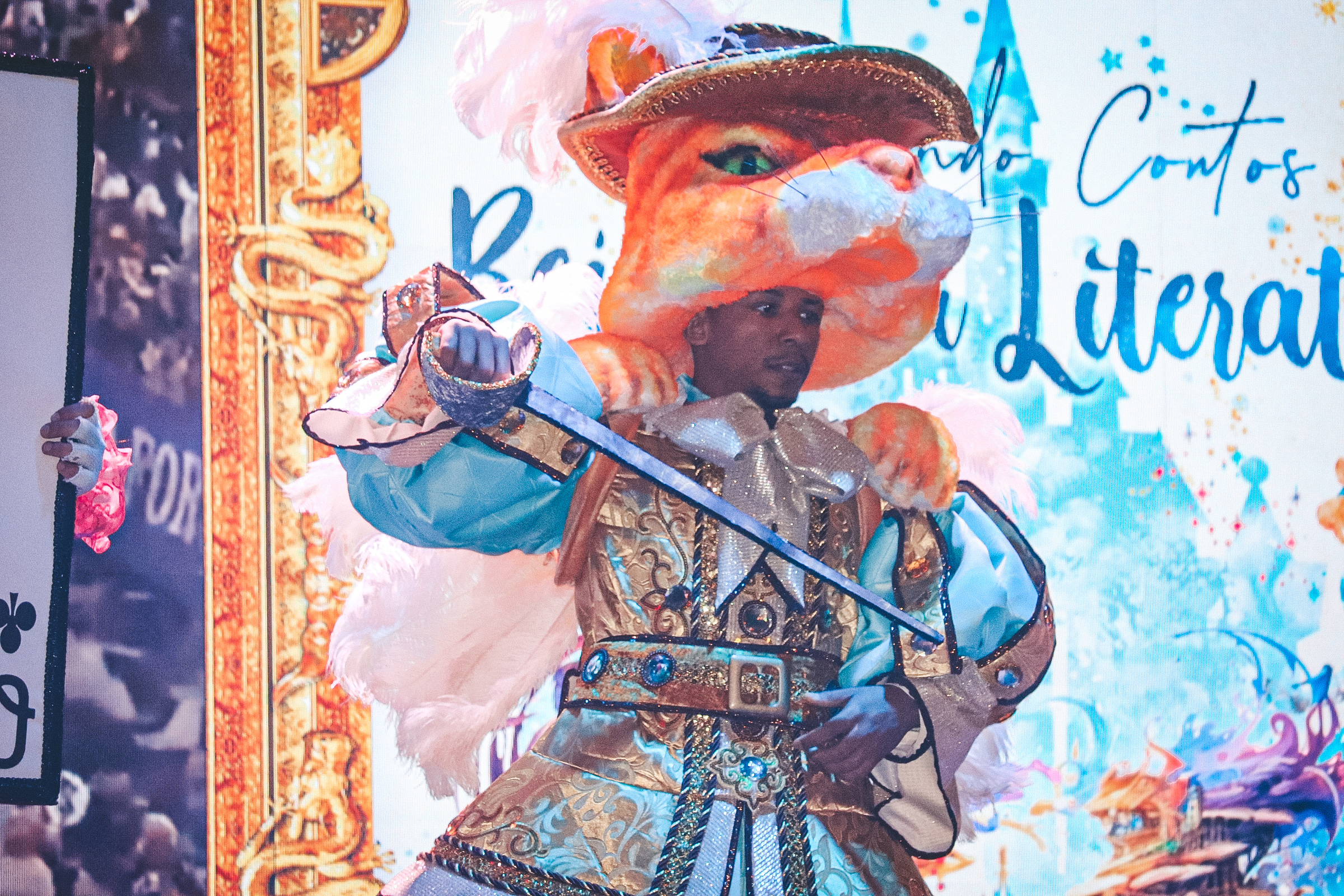 A escola também aproveitou a noite para explanar o enredo “Cantando Contos: Reinos da Literatura”, do Carnavalesco Leandro Barboza e apresentar suas fantasias para o carnaval 2025.